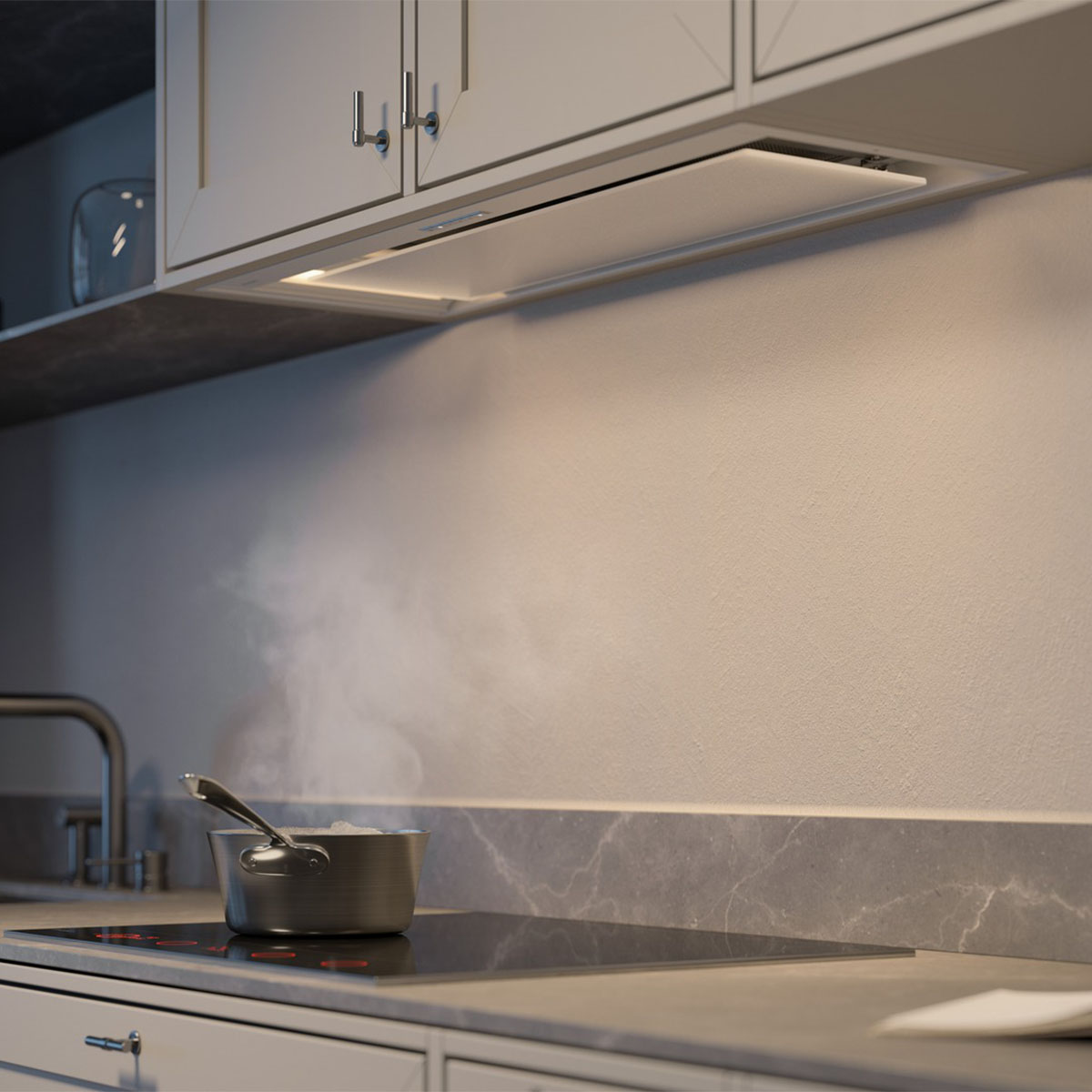 Встраиваемая вытяжка Asko CBB862WGC шириной 86 см обеспечивает мощную вытяжку при сдержанном дизайне, идеально подходящем для современных кухонь, где стиль и функциональность имеют значение.